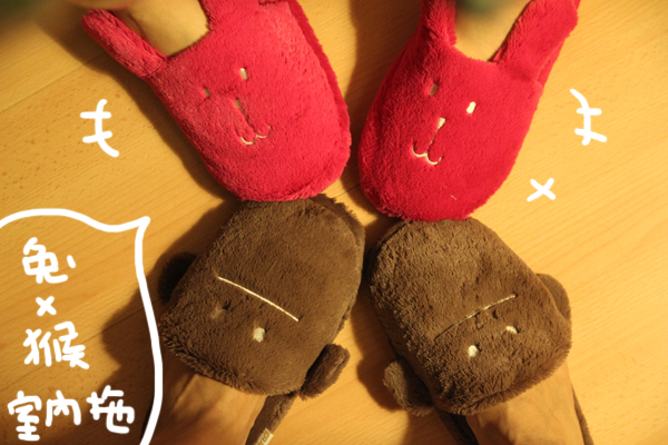 他穿的是咖啡猴子拖鞋!!!也一樣超保暖www比較可惜的是沒有男生腳的size...對賴賴來說小了一點XDDD