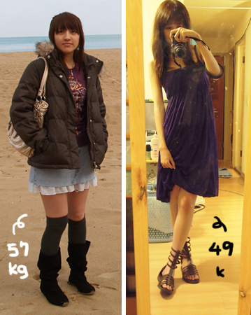 右邊是49kg,左邊好像是52~53kg時的照片,臉沒有以前大的那麼恐怖,可是還是肉到爆=口=