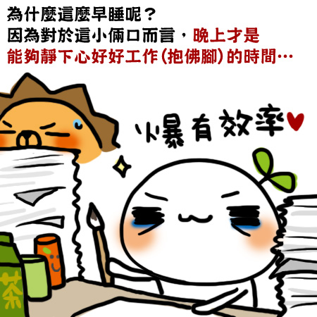 因為晚上常跟賴賴一起趕稿或是看電影之類的,有很多事可以忙。orz