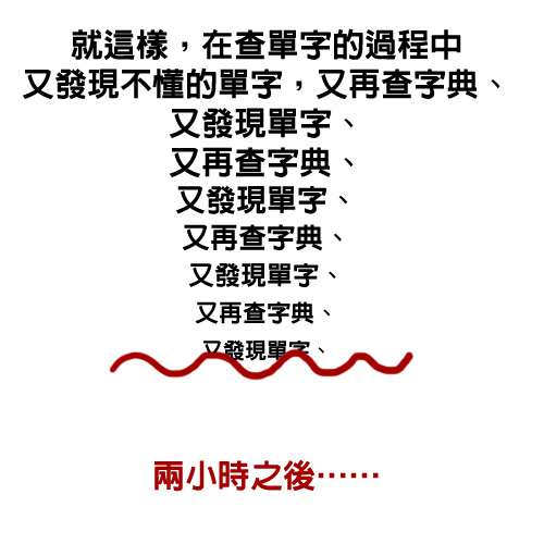 常常查一個單字查十五分鐘都不誇張,加上翻閱字典的時間((有時候還很可憐的眼殘+找不到該單字...