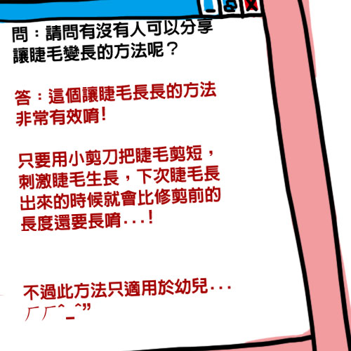 小時候我麻麻都有幫我剪 現在睫毛長長的 @@'' 織織姊姊~加油長回你的睫毛吧!!